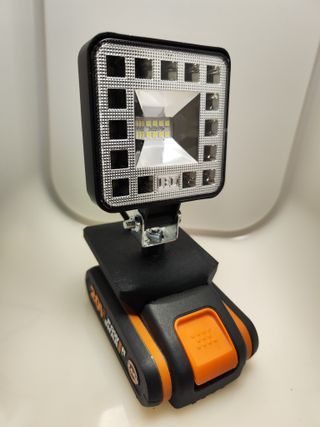 FABRICADO CON FILAMENTO PET-G DE ALTA CALIDAD, MÁS RESISTENTE QUE EL FILAMENTO PLA UTILIZADO EN OTROS DISEÑOS NUEVO DISEÑO ESPECIAL PARA PROFESIONALES, MÁS ROBUSTO Y DURADERO Y SIN PIEZAS PEGADAS QUE PUEDAN DESPEGARSE CON INTERRUPTOR DE ENCENDIDO Y APAGADO Válido para toda la gama Compuesto por 16 leds de tonalidad blanca con un total de 48W y 4800 lúmenes Carcasa metálica para una óptima disipación del calor Fabricado con impresora 3D Se puede fabricar para otras marcas, como Makita, Parkside, Bosch, Milwaukee, Dewalt, Worx, Hilti, Metabo, etc..., pregunta por la tuya BATERÍA NO INCLUIDA