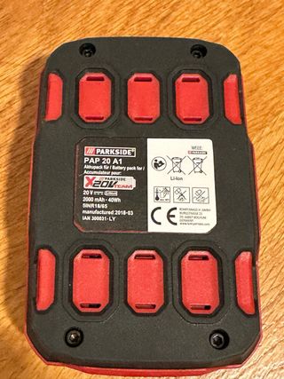 Batería Parkside 20V. La tenía olvidada en un cajón y cuando la he ido a utilizar no carga. Ideal para despiece o reparar.