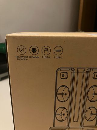 Regleta vertical Sameriver con múltiples tomas de corriente y puertos USB. - 8 enchufes. - 3 puertos USB-A. - 1 puerto USB-C. - Protección de seguridad. Tengo dos unidades, si te llevas las dos, te hago precio.