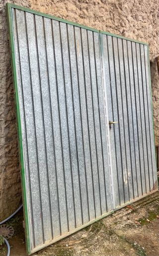 Puerta dos hojas garaje 229 ancho x 223 alto Sin marco, pero con bisagras para poner en el marco, no tengo llaves de la cerradura