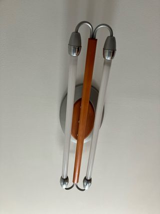 Preciosa lampara fluorescente de estilo vintage. Se encuentra en buen estado. - Dos tubos fluorescentes. - Estructura de madera y metal. - Diseño elegante y atemporal.