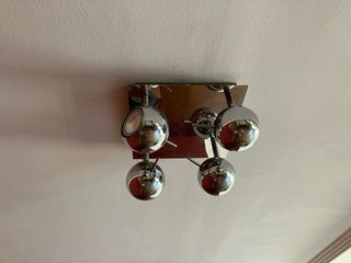 Dos lamparas de techo de estilo moderno. Ideales para iluminar cualquier estancia con elegancia. - Lampara de techo con cuatro focos. - Fabricada en metal cromado. - Diseño moderno y elegante. - Perfecto estado.