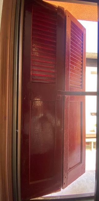 Contraventanas de color rojo brillante, ideales para dar un toque distintivo a tu hogar. - Diseño con lamas. - Acabado lacado. Recién pintadas , De balcón 137x 55