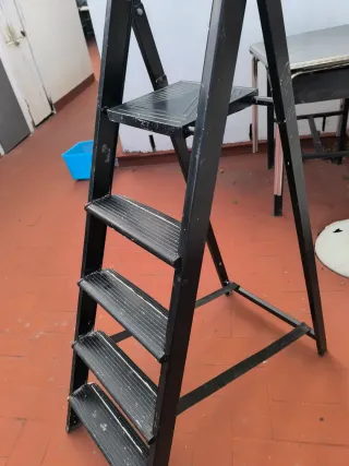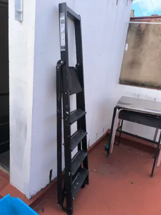 Escalera plegable de aluminio, ideal para tener en casa o para trabajos puntuales. Es ligera y fácil de guardar. - Fabricada en aluminio resistente. - Cuatro peldaños antideslizantes. - Diseño plegable para un fácil almacenamiento.