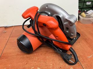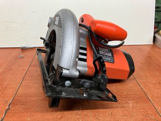 Sierra circular de la marca Black & Decker. Herramienta eléctrica con cable. - Color naranja y plateado. - Base de corte. - Mango ergonómico. - Falta disco