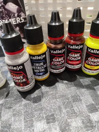 Lote de pinturas y barniz de la marca Vallejo. - Incluye varias pinturas de la gama Game Color. - También incluye un bote de barniz Vallejo. - Ideal para modelismo y miniaturas.