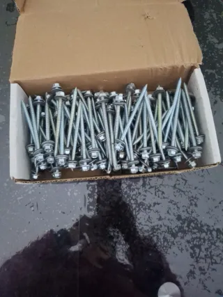 Lote de tornillos con arandela integrada. 125 und Medida 10cm - Arandela de metal con base de goma. - Fabricados en metal. - Ideales para fijaciones.