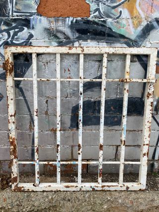Puerta de seguridad anti okupas con medidas de 184 cm de alto por 66 cm de ancho con marco reforzado Solo estuvo puesta 6 meses - Material: Hierro - Color: Marrón.