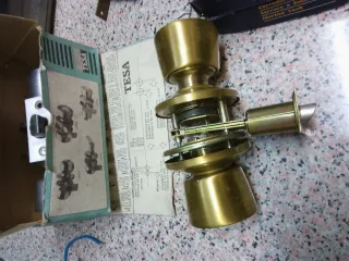 Cerradura de pomo de latón de la marca TESA. Ideal para puertas. Con llave - Mecanismo de cierre. - Acabado en latón, y cromo