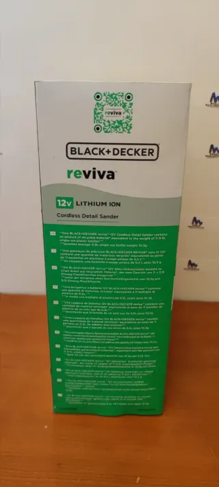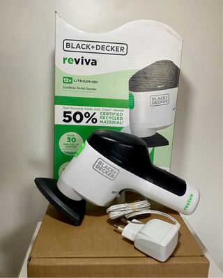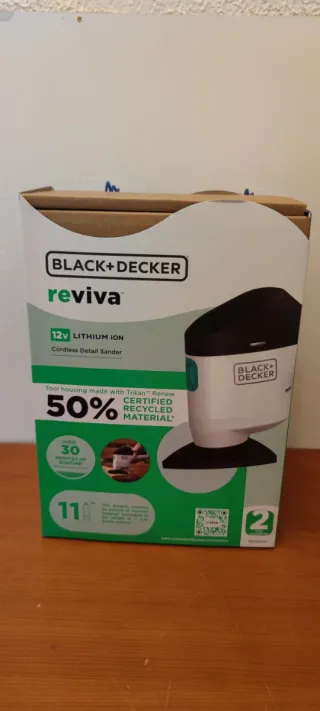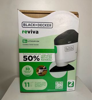Lijadora de detalle inalámbrica BLACK+DECKER Reviva. - Voltaje: 12V - Tipo de batería: Iones de litio - Carcasa fabricada con 50% de material reciclado certificado Tritan™ Renew. -Más de 30 minutos de tiempo de funcionamiento. Incluye 10 hojas de lijado. Totalmente nueva sin usar En su embalaje Original. Precio en Amazon y otras plataformas Online sobre los 56 euros.