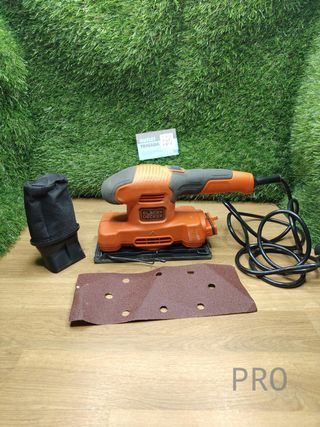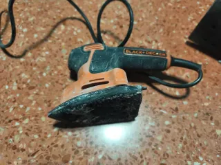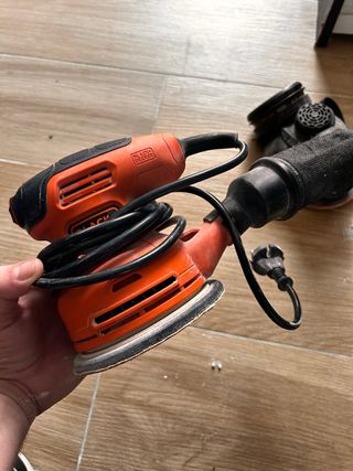 Lijadora que fué usada muy poquitas veces. es prácticamente nueva, como se ve en las fotos. también en las fotos puedes ver el uso del disco. lijadora circular de la marca Black+Decker. - Color naranja y negro. - Incluye bolsa recolectora de polvo.