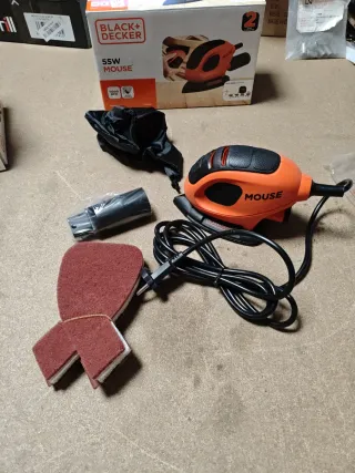 Lijadora para piezas o reparar de detalles compacta de la marca Black+Decker. - Modelo: 55W Mouse. - Incluye bolsa de almacenamiento. - Incluye varios accesorios de lijado la entrego en mano en mí zona o envío por Wallapop