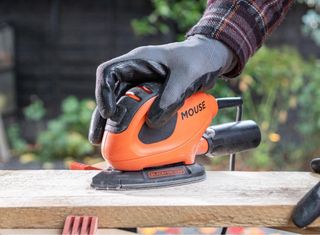 Lijadora eléctrica Black+Decker modelo Mouse. - Diseño compacto y ergonómico. - Color naranja y negro. - Incluye cable de alimentación.