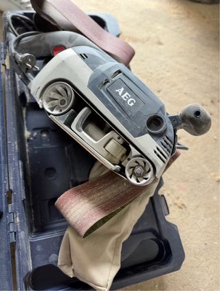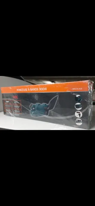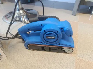 ESTÁ EN SU CAJA PRECINTADA.Es una herramienta eléctrica diseñada para el lijado de superficies, especialmente en madera, para desbaste y preparación antes de un lijado más fino. Cuenta con una banda abrasiva que gira a alta velocidad, permitiendo remover una cantidad considerable de material rápidamente. La potencia de 900W indica su capacidad para realizar trabajos exigentes. Ligera y potente. Es ideal para trabajos de bricolaje y puede ser utilizada para limpiar soldaduras o eliminar costuras sobre cualquier material. - 2 posiciones: estacionaria y móvil. LA ESTRENAS TÚ