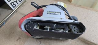 Lijadora de banda de la marca Virutex. Herramienta eléctrica para lijar superficies. - Mango auxiliar para mejor agarre. - Cable de alimentación. FALTA ponerle las escobias.