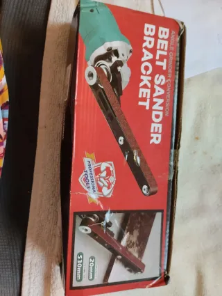 Convierte tu amoladora angular en una lijadora de banda con este adaptador. - Diseñado para amoladoras angulares. - Permite lijado de precisión. - Incluye banda de lijado.