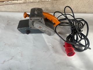 Lijadora de banda industrial con conexión a 380V. Ideal para trabajos de carpintería y metalurgia. - Cuerpo principal de metal. - Empuñadura auxiliar naranja. - Cable de conexión incluido.