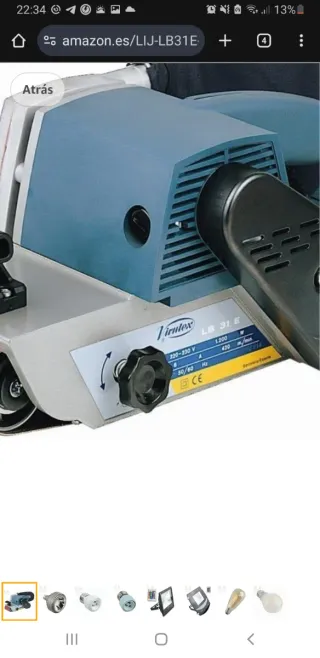 Lijadora de banda de la marca Virutex trifásica revisada - Carcasa de metal y plástico. - Asa de transporte. - Dial de ajuste.