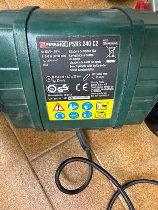 Lijadora de banda Parkside POBD 900 A2. - Potencia nominal: 900 W - Velocidad del plato en vacío: 240-400 m/min - Dimensiones del plato: 75 x 533 mm - Longitud del cable: 4 m - Accesorios incluidos