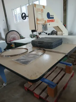 SIN USAR. Se ha encendido un par de veces para practicamente probarla. Lijadora combinada de banda y disco de la marca Scheppach. Banda de lija de 100 x 915 mm. La banda es inclinable y se puede poner en vertical para trabajos especificos. Cuenta con una pequeña mesa y un goniometro para generar distintas geometrias en la lijadora ccircular frontal. Tiene un cuerpo robusto y pesa bastante, cosa que mejorando su estabilidad. Incluye manual y una lija de banda extra.