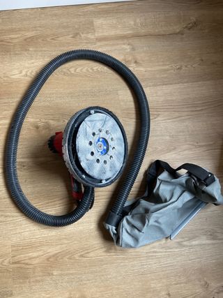 Lijadora eléctrica para trabajos de gotelé y techos. Incluye accesorios para su uso y transporte. - Mango extensible. - Manguera de aspiración. - Bolsa de transporte. - Discos de lija. Nueva , tan solo se utilizo para comprobar el estado de una pared. Se compro nueva en amazon hace 7 meses por 140euros. Conserva caja y embalaje.