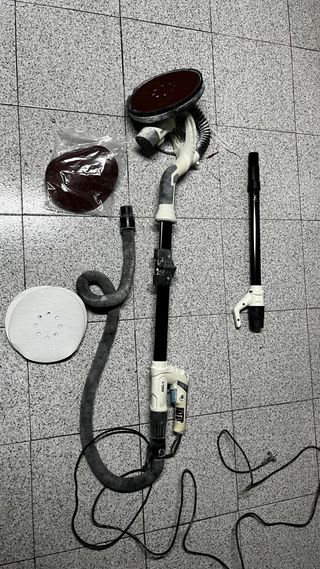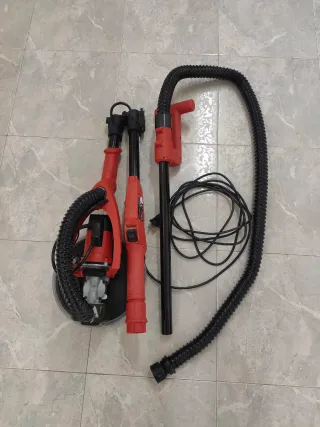 Lijadora de pared con sistema de aspiración integrado. Ha sido utilizada una sola vez. - Mango extensible. - Cabezal giratorio. - Incluye manguera de aspiración. Comprada el 1 de septiembre de 2025. Buen uso. Precio de compra 250€ (ver ticket)