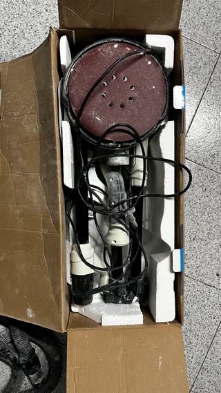 Lijadora de pared VEVOR con motor de 750W. Incluye manguera de aspiración y bolsa para el polvo. - Potencia: 750W - Luz - Cabezal giratorio - Incluye manguera y bolsa de polvo - lijad de diferente grano - No incluye bolsa ni caja Utilizada una sola vez, funciona perfectamente.