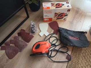 Lijadora eléctrica Black+Decker modelo Mouse. Solo usada para lijar un par de tablas, como nueva. - Diseño ergonómico para un agarre cómodo. - Color naranja y negro. - Incluye algunas lijas adicionales.