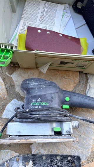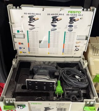Lijadora Festool RS 300 EO. - Incluye lijadora, caja de transporte, pinzas y lijas. Es necesario reemplazar la almohadilla de lijado.