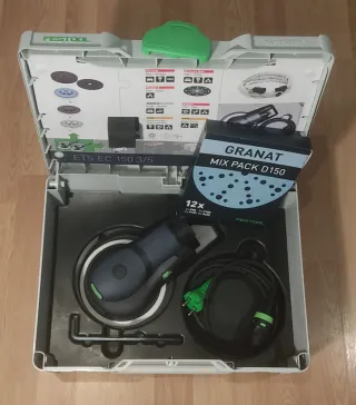 Lijadora Festool ETS 150/3 EQ PLUS con 1 año de uso, la caja esta pintada porque la compre por separado junto al cable. Conserva todos los papeles e incluye lijas de grano 80, 100, 180, 320, 600 - Modelo: ETS 150/3 EQ - Marca: Festool - Incluye caja de transporte. - Se incluye un surtido de lijas.