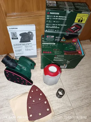 Lijadora Parkside Performance 20V, en su maletín original NUEVA - Incluye lijadora, bateria 20V 4ah y cargador 20V 4.5A - Maletín de transporte. - Accesorios y lijas incluido Tags:bricolaje, herramientas, diy, taller, manualidades, trabajosencasa, arreglos, multiherramienta, atornilladora, taladro, sierra, lijadora, destornillador, llaves, compresor, nivel, inalambrica, bateriaincluida, conbateria, electricas, manual, litio, recargable, parkside, bosch, makita, dewalt, blackanddecker, einhell, stanley, segundaMano, ocasión, chollo,electricista,destornillador,cuadroelectrico, enchufe, luz,herramientas,Parkside, chispa performance