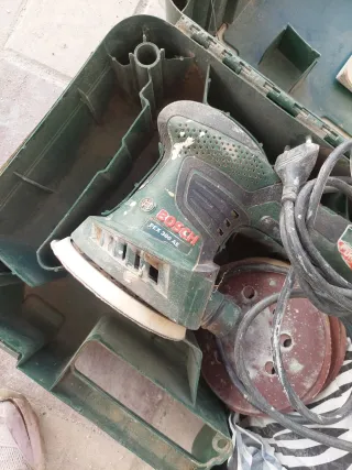 Lijadora orbital de la marca Bosch, modelo PSS 250 A. Incluye su maletín original, manual y lijas. Sólo se usó una vez. Le falta una pestaña de cierre al maletín