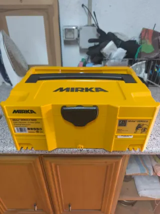 Equipo de lijado Mirka con aspirador integrado. Ideal para trabajos de lijado y extracción de polvo. - Lijadora orbital. - Aspirador de polvo. - Marca: Mirka. Solo Caja, lijafora, aspiradora El cuadro de metal del lijado no lo tengo