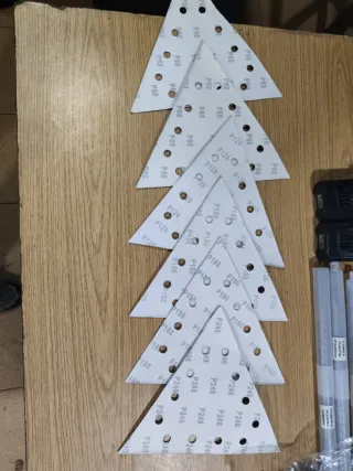 Lijas triangulares para lijadora, con diferentes granos para distintos acabados. - Grano P60 - Grano P80 - Grano P120 - Grano P150 - Grano P180 - Grano P240