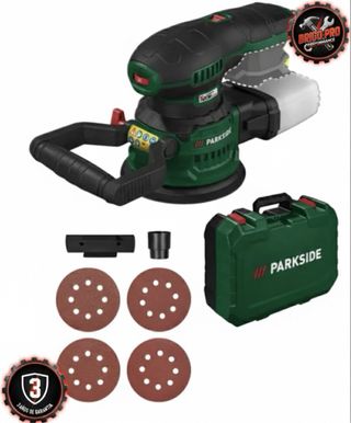 lijadora orbital excéntrica inalámbrica PARKSIDE completamente nueva y sin estrenar, en su maletín original con accesorios. 🔹 Características: • Funciona con batería de 12v (NO incluida). • Diámetro del disco: 125 mm. • Velocidad sin carga: 3000-12000 rpm. • Velocidad de oscilación: 6000-24000 opm. • Diámetro del círculo de oscilación: 3,2 mm. • Sistema de fijación: velcro (hook & loop fastening). • Ideal para madera y otros materiales. • Incluye: 3 hojas de lija, caja recolectora de polvo y maletín de transporte.