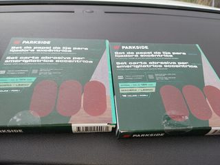 Papel para lijadora excéntrica. Cada caja viene con 18 hojas. Fijación autoadherente. Compatible con lijadora personas de parkside y otros lijadoras excéntricas como bosh, Black and decaer, makita El precio es por los dos paquetes