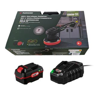 (NUEVA A ESTRENAR) Pulidora enceradora recargable con batería 20V 4.0Ah y cargador rápido 4,5A, con 2 esponjas de pulido y llave de tuercas y maletín Parkside Con empuñadura antideslizante Softgrip Plato lijador de 150 mm con fijación de velcro Regulación de la velocidad de 6 niveles mediante rueda selectora Apto para platos de velcro estándar – Ø 125 mm y Ø 150 mm Adecuado para pulir con pastas de pulir Parte inferior con tacos antideslizantes Soporte de pared integrado