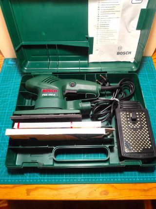 Lijadora orbital BOSCH PSS 150 A, muy poco usada, con recolector de serrín, maletín rigido y 2 paquetes de lijas nuevas. Es mi precio mínimo.