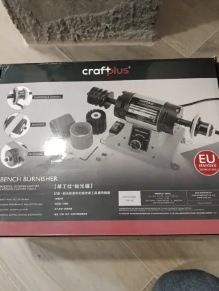 Máquina Craftplus para lijar, afilar y brunir cuero y herramientas de cuero. Ideal para trabajos de marroquinería. - Afilado y brunido. - Lijado. - Acabado y pulido. - Múltiples usos. - Incluye accesorios para lijar, pulir y brunir.
