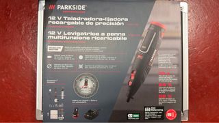 Se vende taladradora-lijadora Parkside Performance. Nueva sin estrenar, solo abierta para las fotos y comprobar que funciona. - Motor brushless: duradero, potente y resistente a la abrasión. - Batería de iones de litio de 12 V / 2 Ah. - Velocidad de giro en vacío: 5000-32000 rpm (6 niveles). - Diámetro de disco máx.: 3,8 cm. - Diámetro de portabrocas máx.: 3,2 mm. - Incluye accesorios y cargador. - Incluye maletin completo con todos sus accesorios.