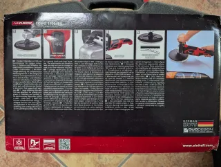 Pulidora y lijadora Einhell CC-PO 1100/1 E, ideal para trabajos de detallado en vehículos. Incluye discos de lijado. Solo un uso. Le quedan 4 años de garantía en Bauhaus, estoy buscando el ticket. - Potencia: 1100W - Diámetro del disco: 180 mm - Incluye 2x K60, 2x K80, 2x K120