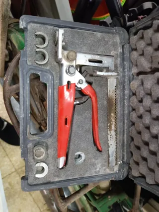 Herramienta manual para reticulado. - Mango de color rojo. - Incluye accesorios. - Se presenta en un estuche.