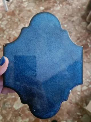 Baldosa decorativa con un acabado brillante en tono azul profundo. Su forma única le da un toque especial. - Tamaño: 20x15 - Color: Azul - Material: Cerámica - Acabado: Brillante