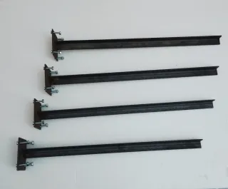 Se venden cuatro perfiles de ángulo de hierro de 2,5 longitud 57 CT Incluyen bases metálicas soldadas de 9×8 CT y tornillos para su fijación. Ideal para. Como patas, tendedero, repisas, vallado, para colgar publicidad ETC. En general para cualquier proyecto de bricolaje, herrería. Se puede cortar y adaptar a la necesidad de cada proyecto.