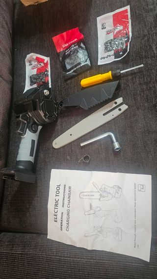 Motosierra eléctrica inalámbrica, casi nueva. Incluye: - Motosierra. - Cadenas de repuesto. - sin Cargador.y sin batería - Llave Allen. - Manual de instrucciones.
