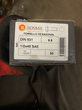 Caja de tornillos hexagonales Rosmil. - Modelo: DIN 931 - Medida: 1/2x45 SAE - Calidad: 8.8 - Cantidad: 50 unidades