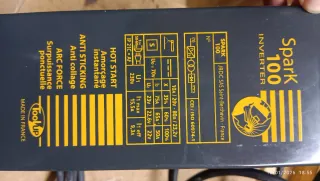 Máquina de soldar marca Spark 100. - Modelo Spark 100. - Incluye pinza porta electrodos y pinza de masa. - Cable de alimentación con enchufe, 10A. - pesa muy poco, 2,8 kg.