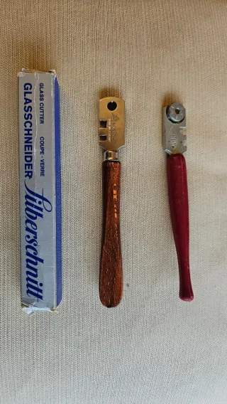 Cortador de cristal y azulejo, manual de estilo clásico. Incluye su caja original. Estan en perfecto estado. - Mango de madera y plastico. - Cabezal metálico. Tengo 2 unidades. El precio es por uno. Los 2 por 15€. Ideal coleccionistas.