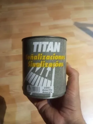 Lata de pintura Titan para señalización vial. - Color: Amarillo (3201). - Ideal para marcar caminos y zonas. - Formato lata.