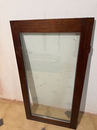 Ventana de madera con cristal de cámara. Ideal para aislamiento térmico y acústico. - Marco de madera oscuro. - Cristal con cámara. Precio a negociar